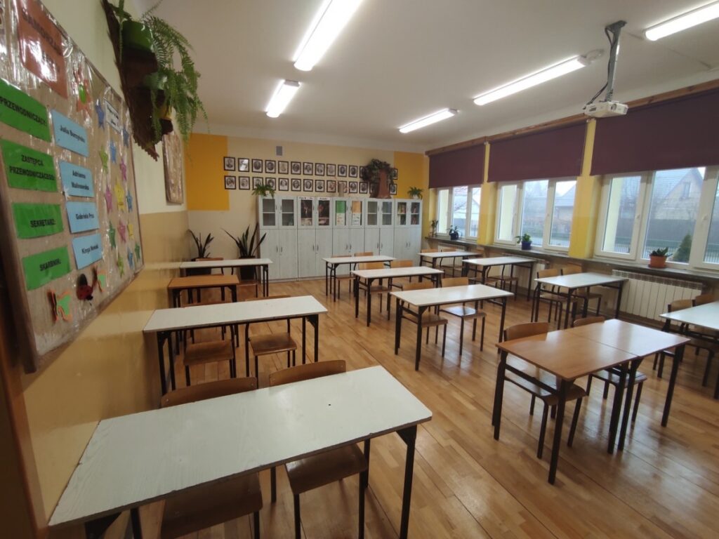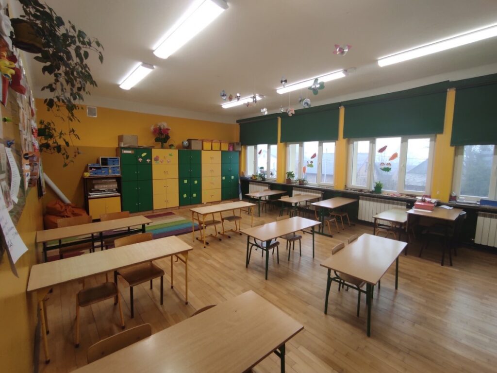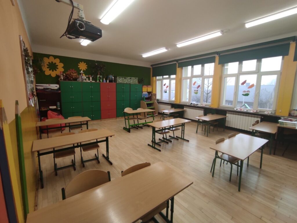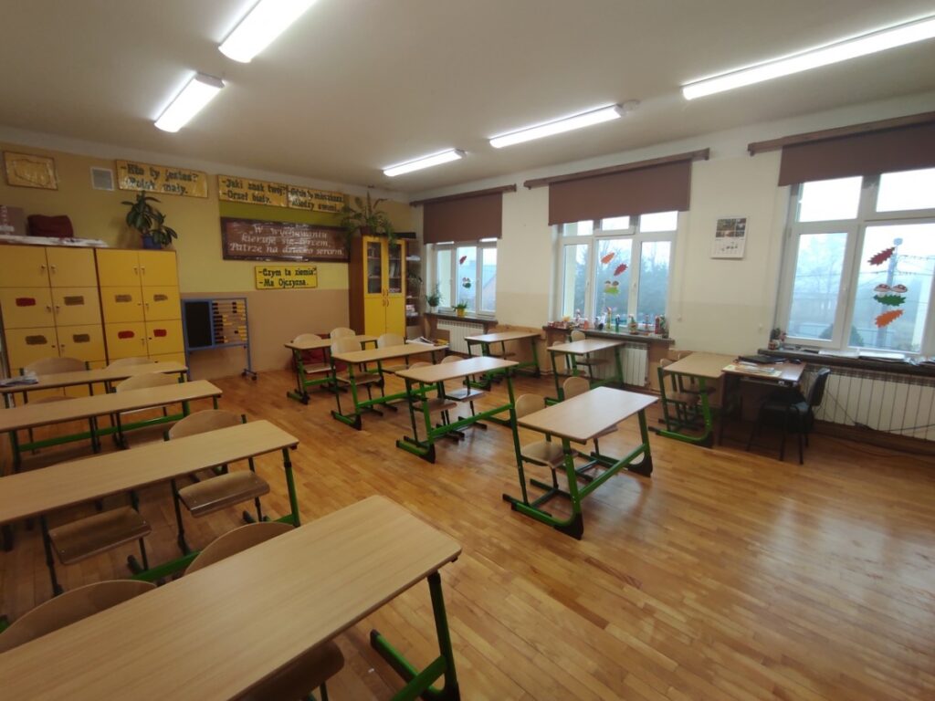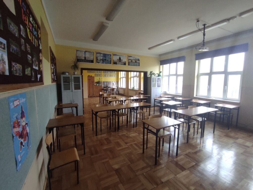 Sale lekcyjne klas I-III znajdują się na I piętrze naszej szkoły. Dzieci mają tu do dyspozycji 4 sale. Uczniowie mogą w swoich szafkach pozostawiać podręczniki i przybory szkolne.