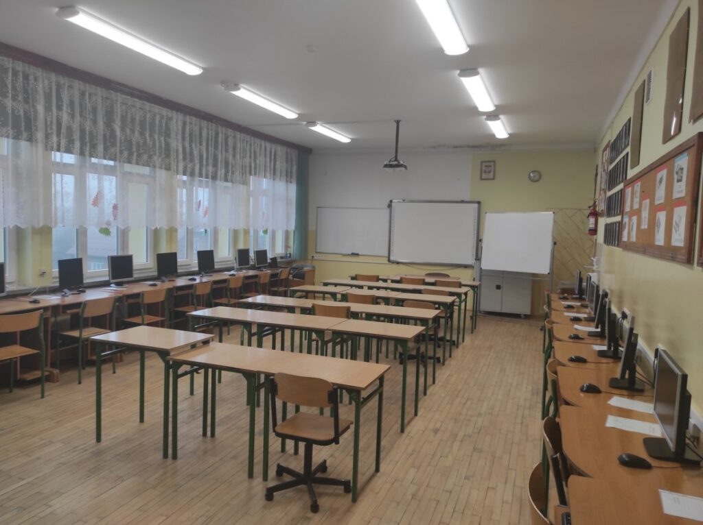 Sale lekcyjne klas IV-VIII znajdują się na parterze oraz I piętrze naszej szkoły. Uczniowie mają do dyspozycji 7 pracowni: