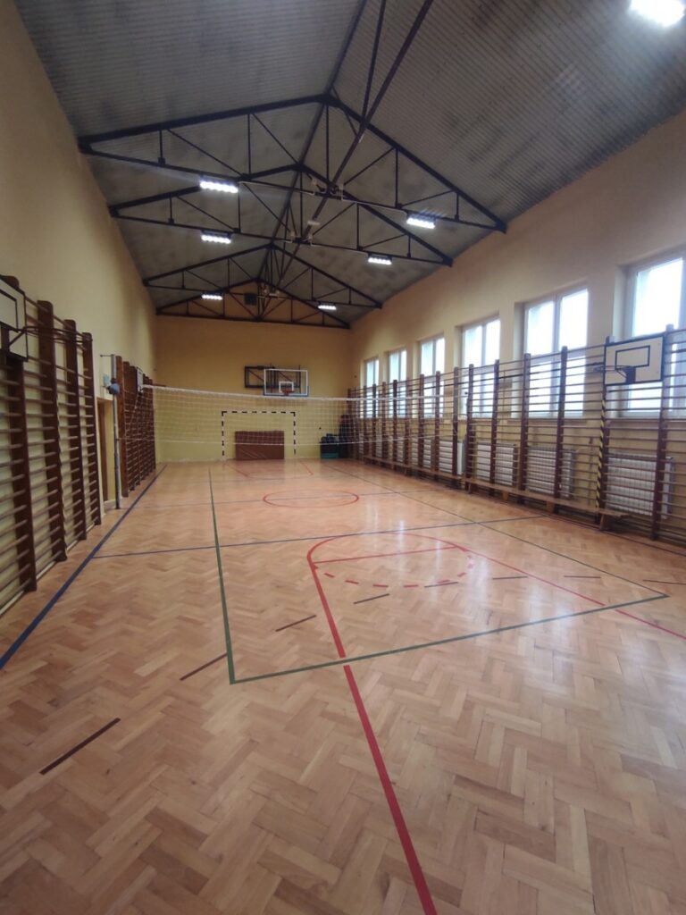 Dysponujemy nowoczesnym boiskiem sportowym Orlik, na którym odbywają się lekcje wychowania fizycznego oraz zajęcia rekreacyjne. Boisko wielofunkcyjne przeznaczone jest do gry w piłkę ręczną, piłkę nożną, piłkę koszykową.